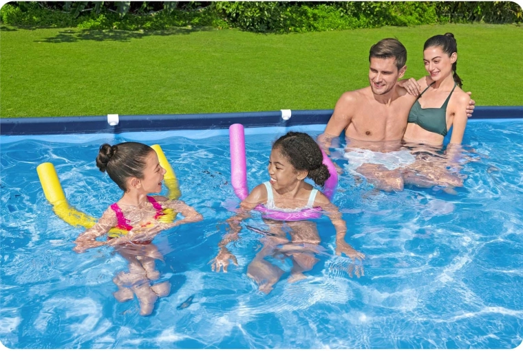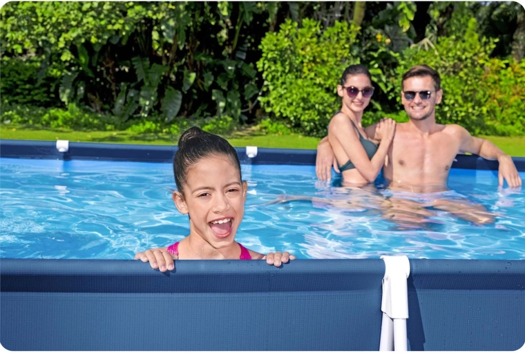 Het BESTWAY Steel Pro framezwembad is de ideale keuze voor verfrissing met het gezin en waterpret in de tuin. De stevige staalconstructie met stabiele poten en de duurzame 3-laagse PVC-folie met nylonversterking zorgen voor een lange levensduur, terwijl de meegeleverde filtratie en accessoires het water kristalhelder houden. Dankzij het slimme ontwerp voltooit u de installatie in drie snelle stappen – zeil uitrollen, het frame monteren en vullen met water.
