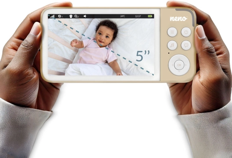 Neno Vedo Cream is een betrouwbare video-babyfoon die je maximale controle geeft over wat er in de babykamer gebeurt. Het grote 5" kleurendisplay levert een helder beeld, terwijl de automatische nachtmodus ook in volledige duisternis duidelijke opnames biedt. De draaibare, op afstand bedienbare camera laat je een brede ruimte volgen en met de 4× zoom bekijk je moeiteloos elk detail.