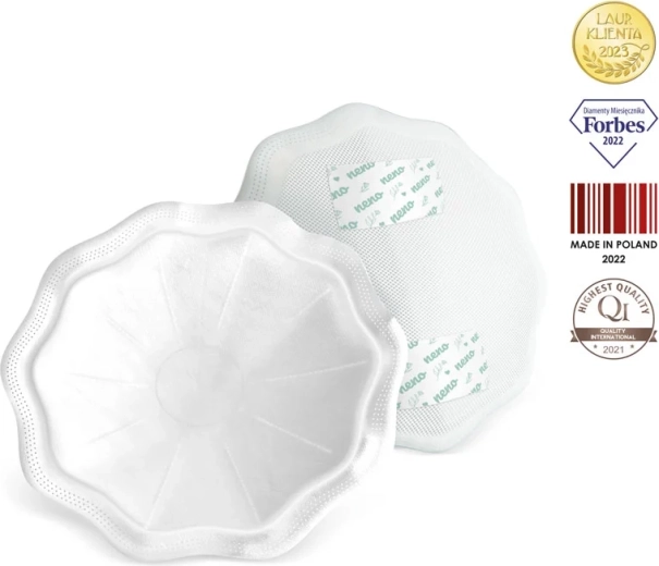 De Neno Stella zoogkompressen zijn ontworpen voor dagelijkse zekerheid en comfort voor zogende moeders en vrouwen met een gevoelige huid. Dankzij de uitstekende hygroscopische eigenschappen absorberen ze snel vocht en blijft de buitenlaag langer droog. Het ultradunne design van circa 1 mm zorgt ervoor dat ze onzichtbaar onder kleding blijven en toch perfect hun vorm behouden in de bh-cup.