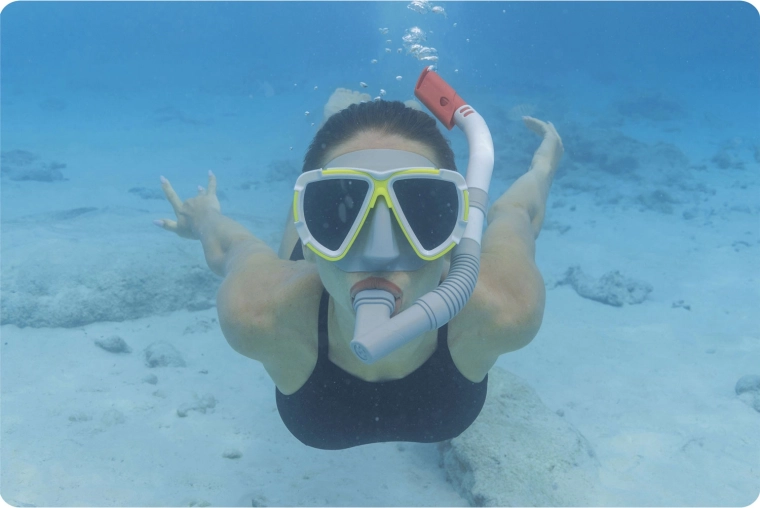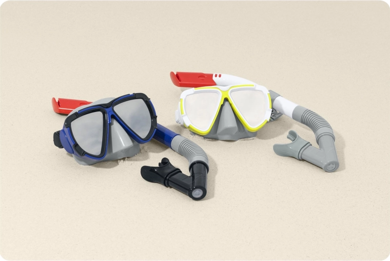 Deze lichte en duurzame Bestway snorkelset maakt elke zomer leuker. Dankzij de zachte skirt en de verstelbare siliconen band past het masker zich aan de vorm van het gezicht aan, biedt het een breed gezichtsveld en helpt het een goede afdichting te behouden zonder onprettige druk. De snorkel met flexibel balggedeelte en comfortabel siliconen mondstuk maakt rustig ademen mogelijk tijdens het snorkelen aan de oppervlakte.