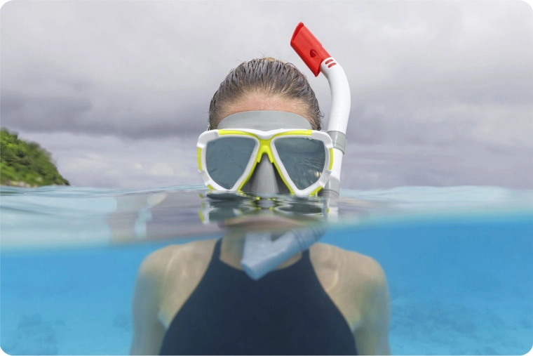 Polycarbonaat lenzen met UV-bescherming verhogen de slagbestendigheid en beschermen de ogen tegen de zon. Dankzij de universele maat en het latexvrije ontwerp is de set geschikt voor de meeste gebruikers vanaf 14 jaar, zowel op vakantie aan zee als bij recreatief snorkelen in een meer.