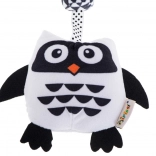 Het hangspeeltje in de vorm van een uil is gemaakt van zacht en aangenaam materiaal, aangepast aan de behoeften van de allerkleinsten. De clip zorgt voor eenvoudige bevestiging aan kinderwagen, wieg of draagzak. Dankzij de verschillende texturen stimuleert het speeltje de tastzin van kinderen. De rammelaar en ritselende elementen stimuleren het gehoor, terwijl het gebruik van contrasterende tinten de visuele waarneming aanmoedigt. Het zwart-witte design is de beste keuze voor baby's die hun zicht nog niet volledig ontwikkeld hebben.