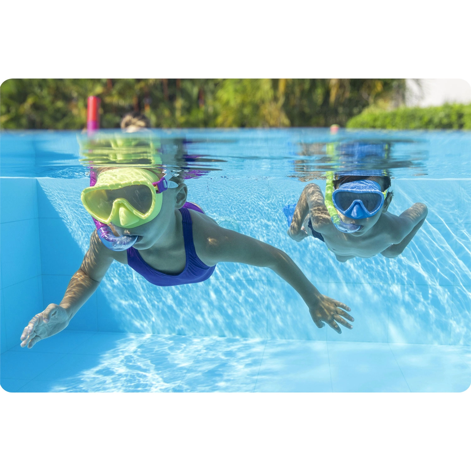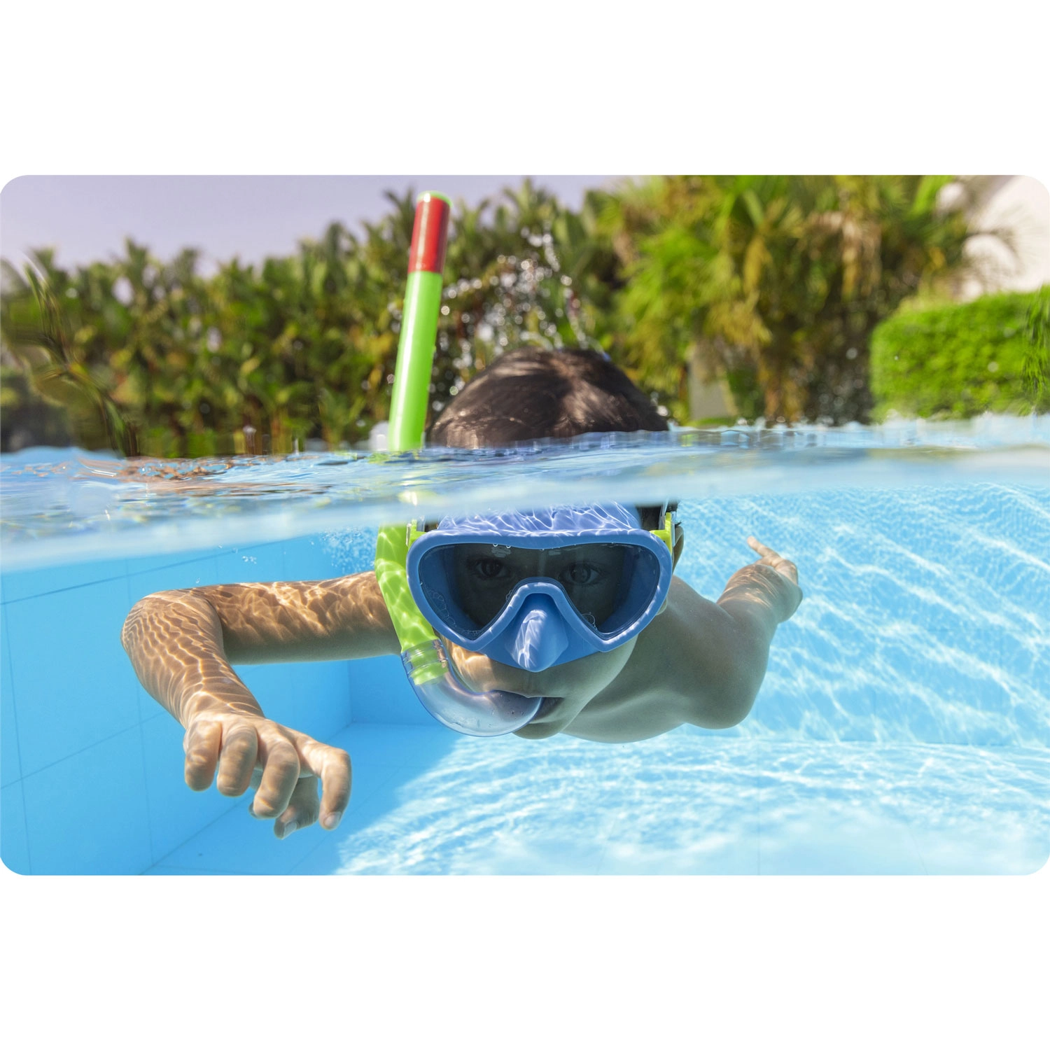 De BESTWAY kindersnorkelset is de ideale keuze voor jonge avonturiers die het leven onder het wateroppervlak veilig en comfortabel willen ontdekken. Dankzij de verstelbare band en de ergonomische vorm sluit het masker perfect aan, terwijl de snorkel rustig ademen aan de oppervlakte mogelijk maakt. De vinnen in maat 24–27 zorgen voor een betere afzet en vloeiendere beweging in het water.