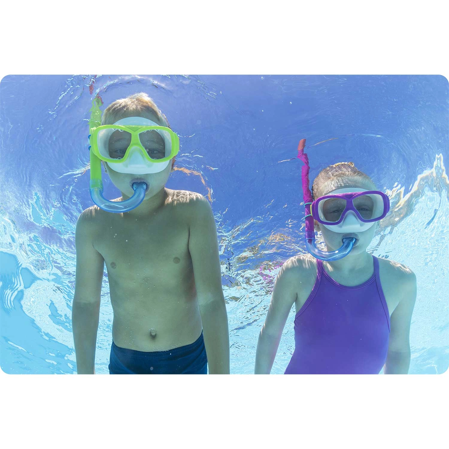 Met deze praktische BESTWAY set geniet je van comfortabel snorkelen in zee en zwembad. Het masker met gehard glas biedt weerstand tegen krassen en drukbelasting, terwijl de ergonomisch gevormde lens zorgt voor een breed overzicht. De zachte seal en de verstelbare siliconen band houden het masker veilig op zijn plaats.