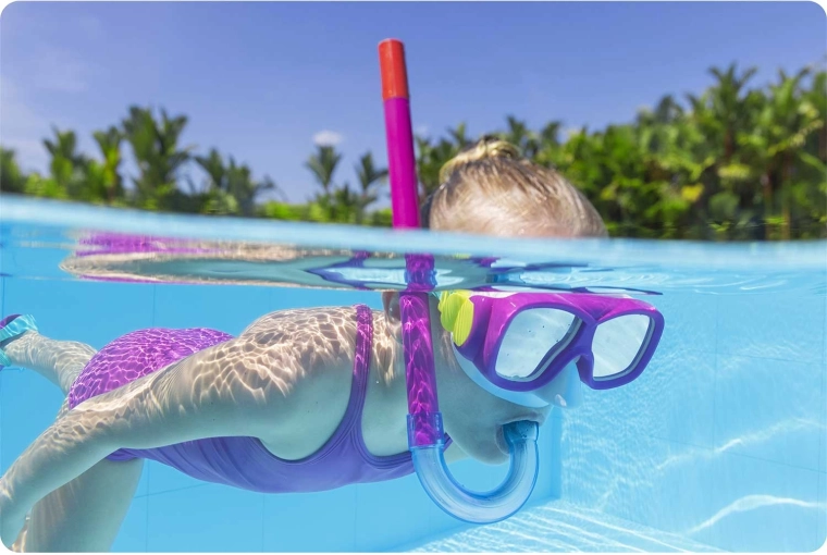 De BESTWAY set is een ideale keuze voor gezinsvakanties, zwembad en zee. Het geharde glas van het masker biedt een helder en duurzaam zicht, terwijl de zachte skirt en de verstelbare siliconenband zorgen voor een dichte en comfortabele pasvorm bij verschillende gezichtsvormen.