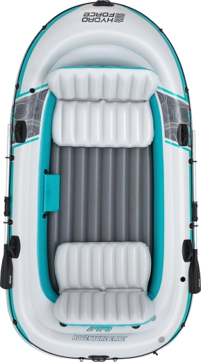 Twee opblaasbare zitjes en één extra opblaasbaar kussen verhogen het comfort tijdens langere tochten. De geribbelde bodem biedt zekerheid en ondersteuning.