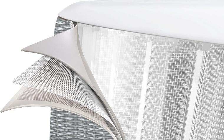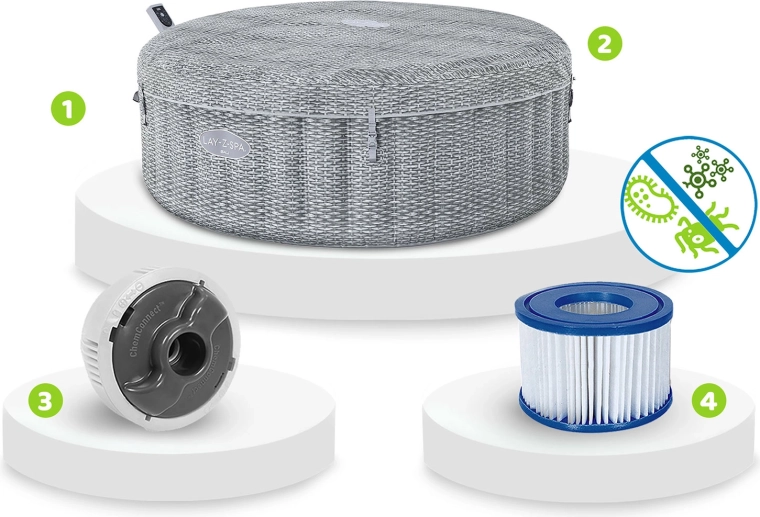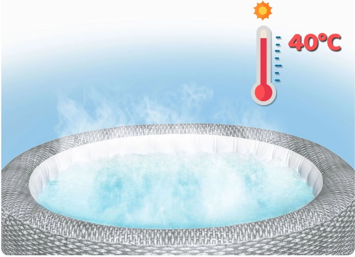 De TriTech-constructie met stevige, comfortabel gevoerde wanden behoudt de vorm en is weerbestendig. De geïntegreerde filterpomp, ChemConnect‑dispenser en filterpatroon VI zorgen voor kristalhelder water, terwijl de thermoactieve afdekking en zachte geïsoleerde bodem warmteverlies beperken.