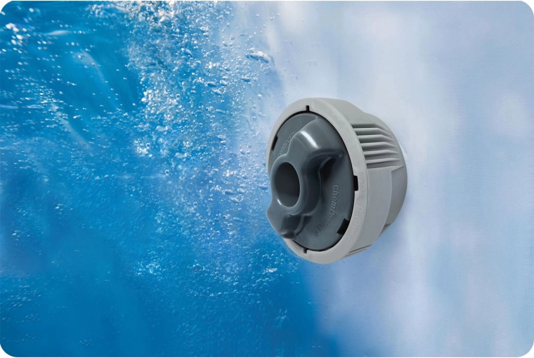 Stevige wanden van TriTech-materiaal behouden de vorm en zitten comfortabel. Geïntegreerde filtratie, ChemConnect en filterpatroon VI houden het water langdurig helder.