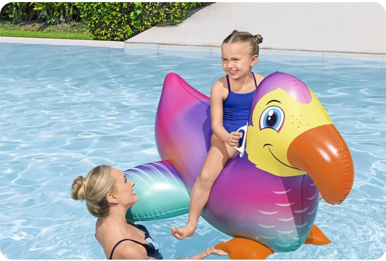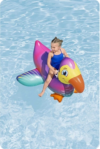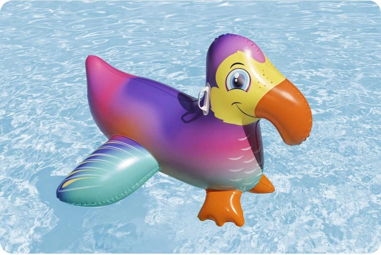 De Bestway opblaasbare tukan is een speelse en veilige metgezel voor waterpret voor kinderen vanaf 3 jaar. Dankzij het grote lichaam en de uitgebalanceerde vorm is hij uitzonderlijk stabiel, terwijl de stevige handgrepen comfortabel opstappen en vasthouden tijdens het spelen mogelijk maken. Het kleurrijke design met opvallende snavel trekt gegarandeerd de aandacht op elke zomervakantie.