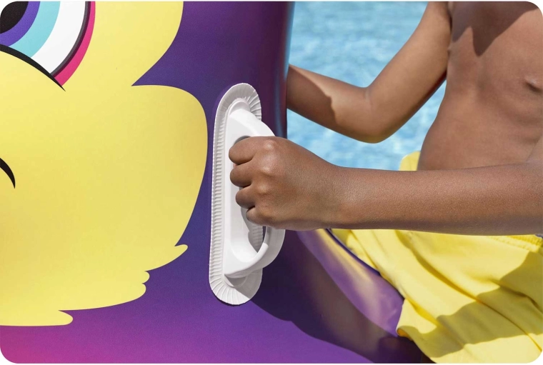 Twee geïntegreerde handgrepen vergemakkelijken het opstappen en vasthouden tijdens het varen, waardoor kinderen zich veiliger voelen en meer stabiliteit hebben.