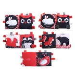 Bereid uw kind voor op een magische reis van het ontdekken van vormen en patronen met dit geweldige boek. Het boek is ontworpen in contrasterende kleuren zoals zwart, wit en rood, die ideaal zijn voor visuele stimulatie van jonge kinderen. Het boek bevat vier textiele pagina's met dieren zoals een vogeltje, konijntje, uil, vos, beer, eekhoorn en wasbeer.