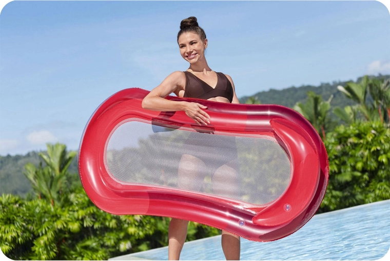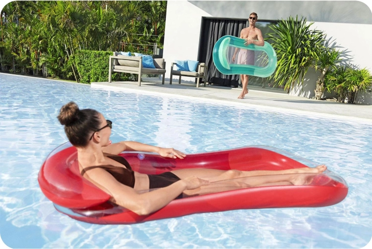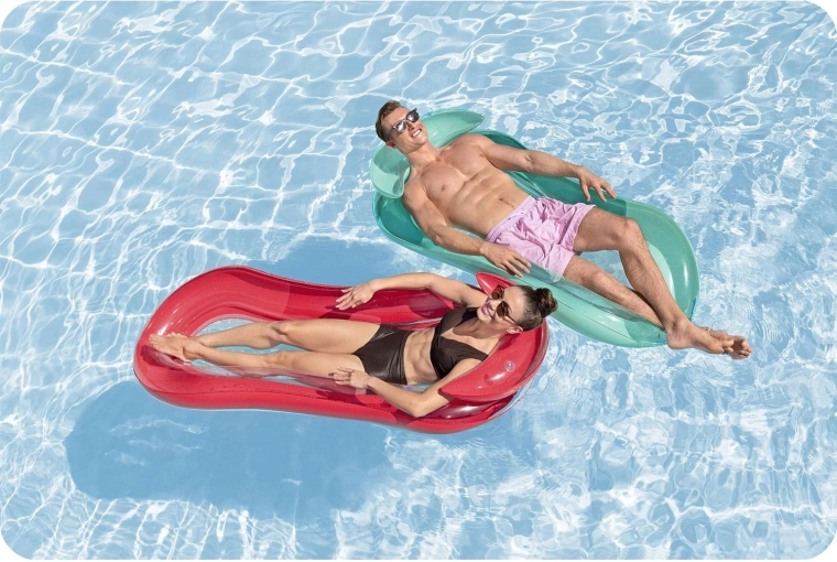 De praktische en stijlvolle BESTWAY lounge combineert een stabiele opblaasbare rand voor uitstekende drijfkracht met een comfortabel gevormd ligvlak voor een natuurlijke relaxpositie. Het geïntegreerde kussen en de gebogen hoofdsteun ondersteunen nek en schouders, zodat je urenlang kunt ontspannen op het wateroppervlak.
