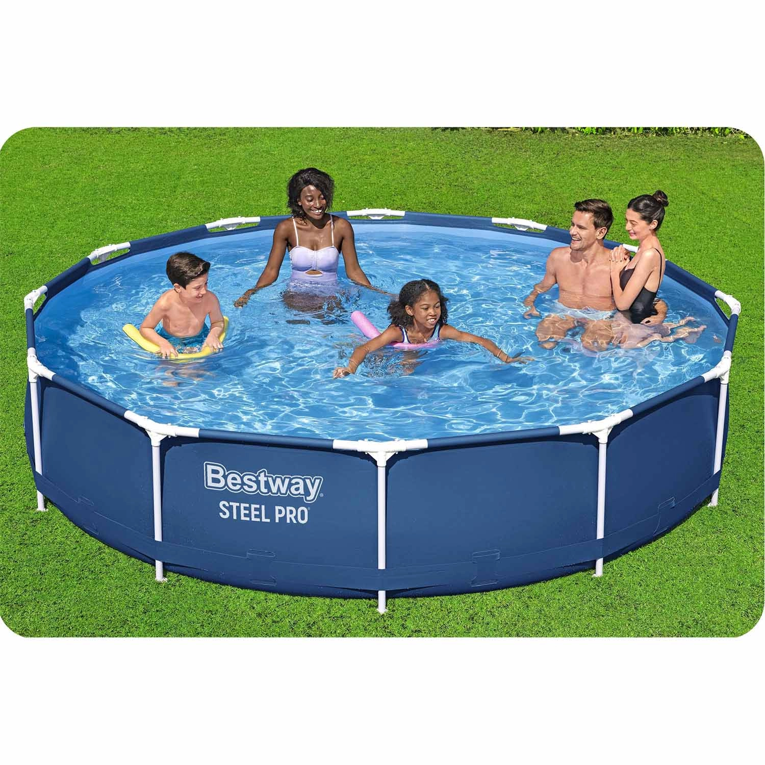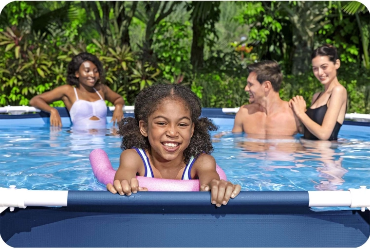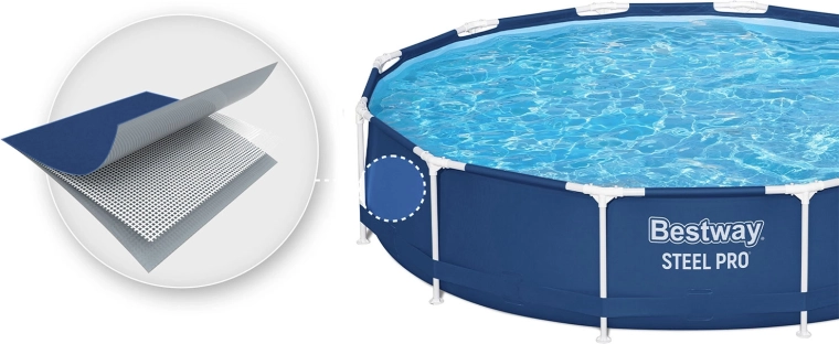 Dit ronde bovengrondse zwembad BESTWAY Steel Pro is een ideale keuze voor in de tuin of bij het zomerhuis. Het stevige stalen frame met anticorrosiebehandeling en de duurzame drie-laagse folie met nylonversteviging bieden een lange levensduur en stabiliteit. Dankzij de aanbevolen vulling van 90% bevat het zwembad tot 6.473 l water – voldoende ruimte voor verfrissing en gezinsplezier.