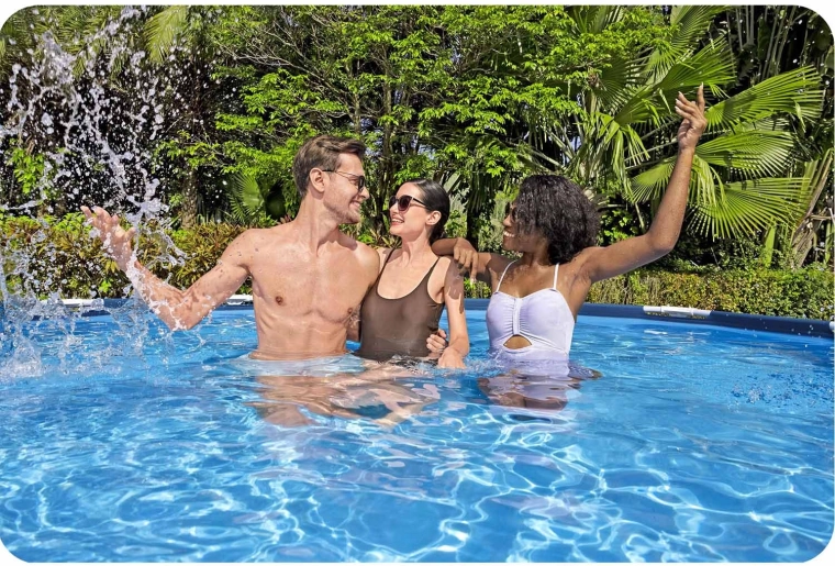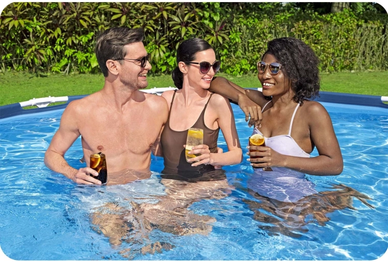 De filterpomp met patroonfilter, multitabletten en een drijver met thermometer houden het water gedurende het hele seizoen kristalhelder en hygiënisch.