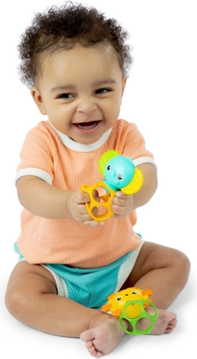 Het lichte, flexibele ontwerp met veel openingen ondersteunt een zekere grip en de ontwikkeling van de fijne motoriek vanaf 3 maanden.
