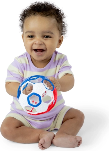 Het OBALL Rattle Goals speeltje is een geweldige eerste bal voor pasgeborenen en oudere kindjes. Dankzij de flexibele en duurzame constructie met veel openingen is de bal zelfs voor de allerkleinste handjes gemakkelijk vast te houden. De rammelende kraaltjes binnenin stimuleren het kind om te bewegen, te schudden en nieuwe geluiden te ontdekken.