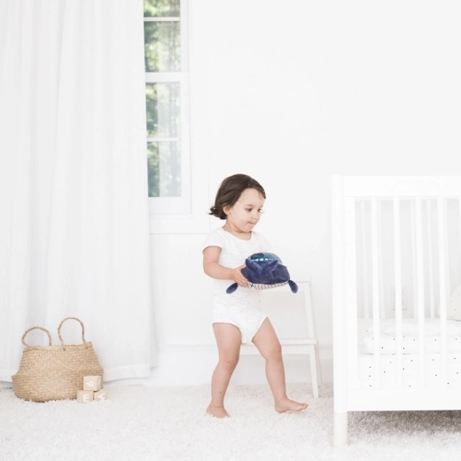Kies een wiegeliedje, een zeemelodie of white noise (regen, golven, hartslag). Het volume pas je eenvoudig aan de omgeving en de stemming van je baby aan.