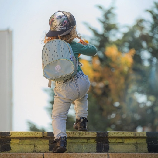 De doordachte indeling maakt organiseren makkelijk: het hoofdvak met rits biedt plaats aan een snack en een favoriet speeltje, het voorvak is ideaal voor “schatten” en kleinigheden. De rugzak is licht, duurzaam en eenvoudig te reinigen – de perfecte metgezel voor de speeltuin, de kleuterschool en uitstapjes.