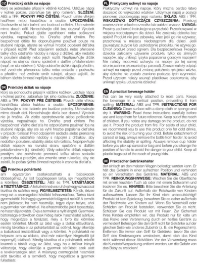 De houder houdt het drankje in een stabiele verticale positie, wat helpt morsen te voorkomen. Ideaal voor babyflesjes en koffie voor onderweg. Onderhoud is eenvoudig – veeg af met een vochtige doek en droog na.