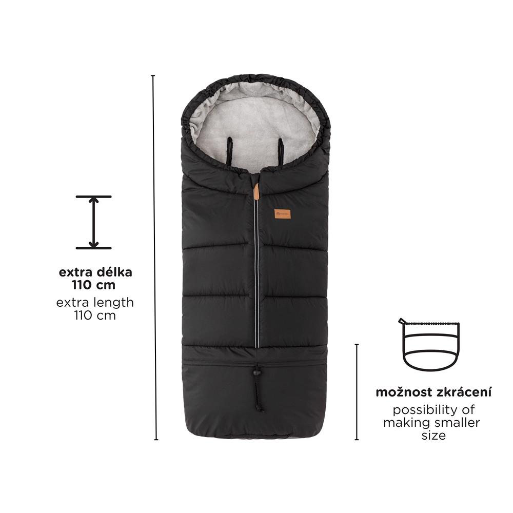 - 3-in-1 lengteinstelling – maak de voetenzak kleiner voor reiswieg of autostoel door de onderkant te verwijderen.