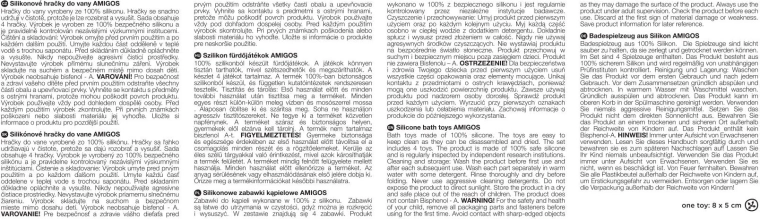 De set Petite&Mars Amigos biedt veilig en creatief waterspel voor kinderen vanaf 6 maanden. Elk figuurtje vult zich met water wanneer het wordt ondergedompeld en sproeit het op een speelse manier door de openingen. De zachte siliconen liggen prettig in kleine handjes en het knijpen versterkt de grijpkracht en de oog-handcoördinatie.