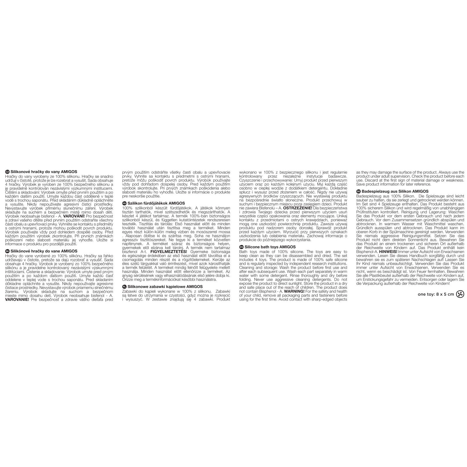 De praktische tweedelige constructie (boven- en onderkant) maakt het mogelijk om de speeltjes na het baden los te draaien, grondig te wassen en te drogen – zonder achtergebleven water binnenin. Dankzij de compacte afmetingen zijn ze perfect voor in bad, het zwembad en onderweg.