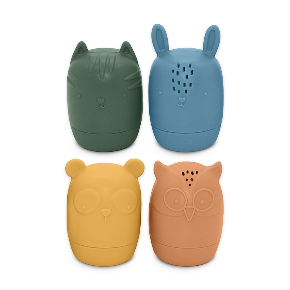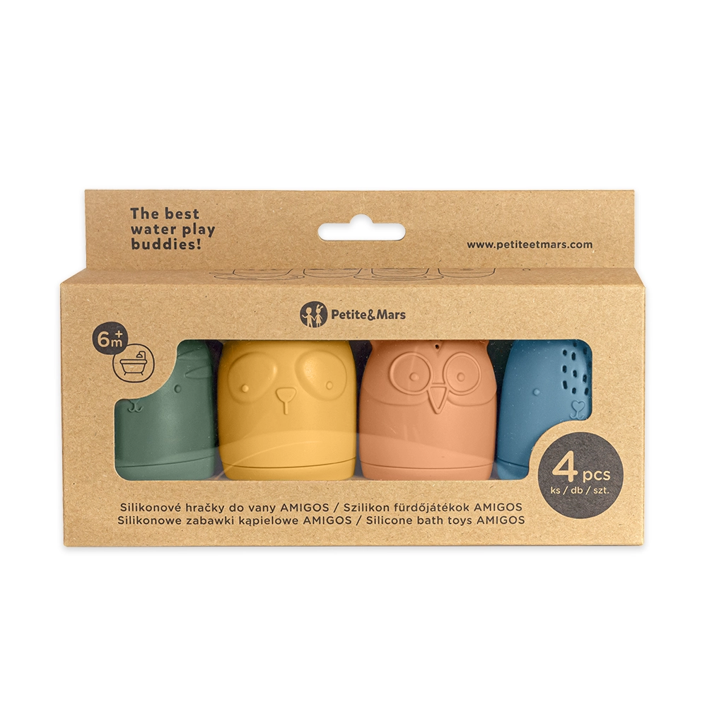 Ontdek de schattige siliconen waterspeeltjes Petite&Mars Amigos – een set van vier diertjes (uil, haas, kat en panda) waar kinderen dol op zullen zijn. Ze zijn zacht, lichtgewicht en gemaakt van 100% voedingsgeschikte siliconen zonder BPA. Dankzij de openingen om water op te scheppen en te sproeien, verandert badderen in een leuke en zintuiglijke speelervaring en wordt de fijne motoriek gestimuleerd. Ze zijn eenvoudig uit elkaar te halen en schoon te maken – ideaal voor in bad, het zwembad en op vakantie.