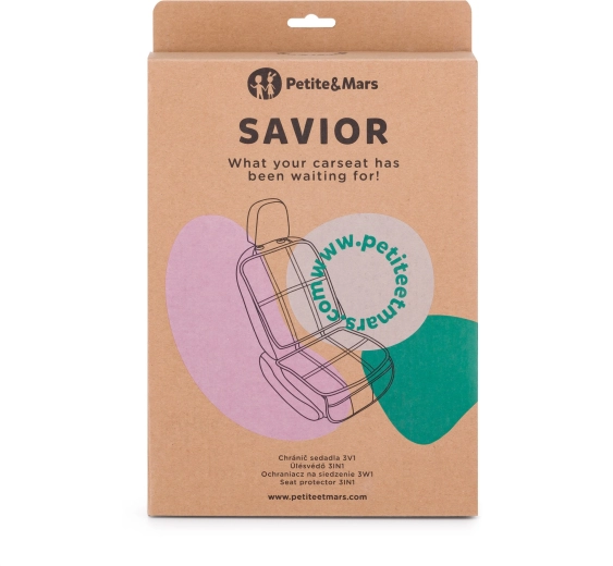 De praktische 3-in-1 autostoelbeschermer Petite&Mars Savior combineert bescherming van de stoel onder en achter de autostoel met een ruime organizer voor speelgoed, flesjes en kleine spullen. Eenvoudig te bevestigen met riemen, vuilafstotend en helpt het interieur van de auto schoon en overzichtelijk te houden.