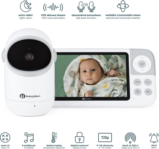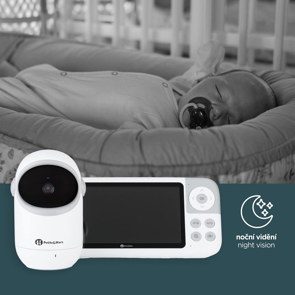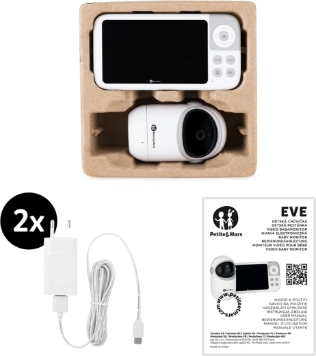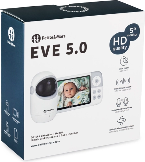 De digitale babyfoon PETITE&MARS EVE 5.0 is ontworpen voor zorgeloze bewaking van je baby zonder complexe apps en netwerken. De gesloten overdracht zonder internet beschermt je privacy, terwijl het 5" LCD met HD‑beeld (720p) ook ’s nachts voor detail zorgt. De lange batterijduur van de ouderunit en het bereik tot 300 m geven je bewegingsvrijheid in huis en tuin.