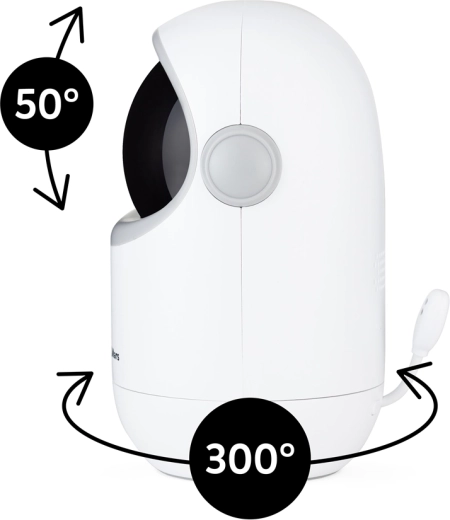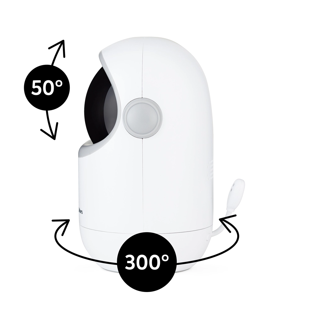 Draai de camera horizontaal tot 300° en verticaal 30° omhoog/20° omlaag. De kijkhoek van 68° zorgt voor controle over het hele bedje en de speelruimte.