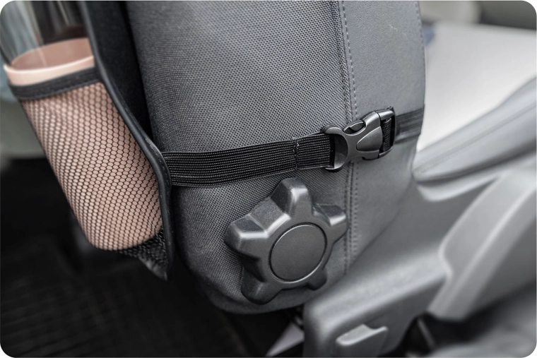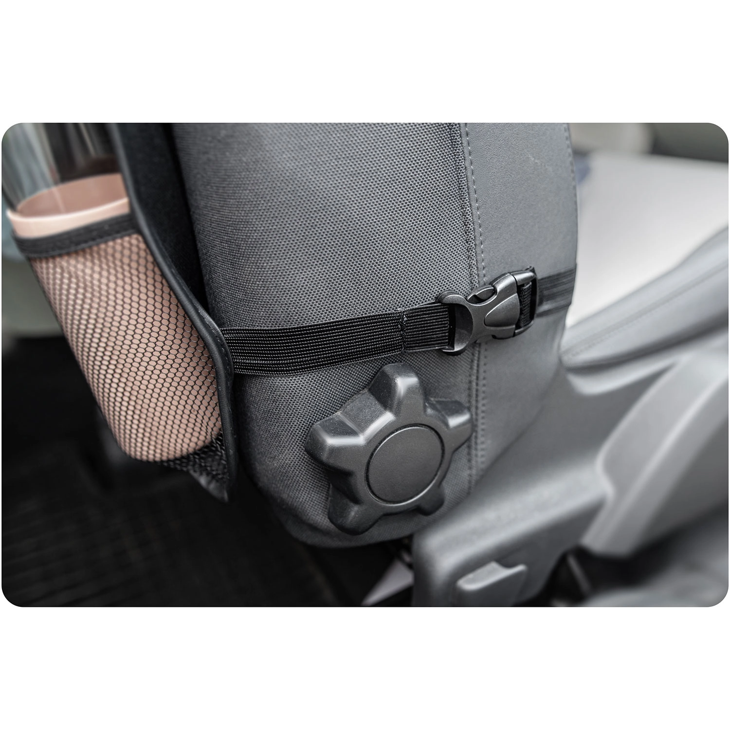 Monteren doet u in een mum van tijd dankzij de verstelbare banden. Kinderen hebben alles binnen handbereik — tablet, snacks, fles en favoriet speelgoed — en u rijdt ontspannen. Ideaal voor lange ritten en dagelijks woon-werkverkeer.