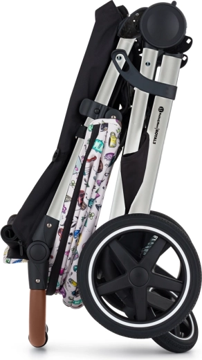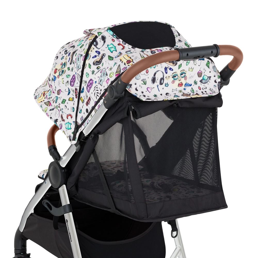 De gelimiteerde Limited 100-collectie brengt een frisse uitstraling van jonge ontwerpers naar stad en natuur. De Royal 3 in de Silver Tattoo-variant valt op door het stevige aluminium frame in een elegant design, bruine details van eco‑leer en praktische volrubberen wielen met een stijlvolle witte bies. Dankzij het Panoramic Ventilation-systeem wordt de kinderwagen aan drie zijden geventileerd, wat een aangenaam klimaat biedt, zelfs bij hitte.
