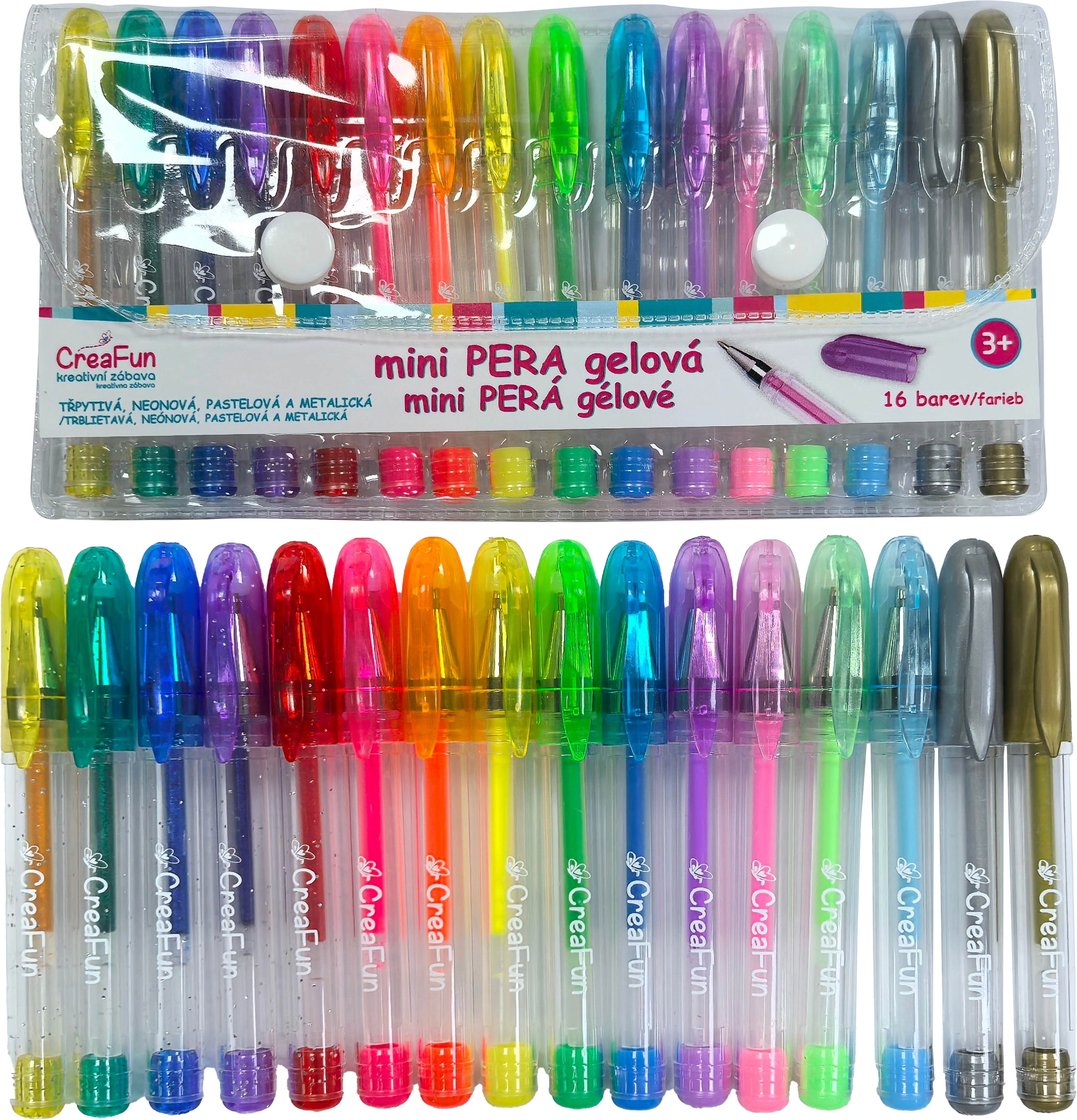 Ontdek het plezier van creativiteit met de CreaFun set met 16 mini gelpennen in een kleurrijk palet. De pennen schrijven vloeiend en zonder haperen, waardoor ze geschikt zijn voor decoreren, markeren, kleine illustraties en creatief schrijven in schriften en dagboeken.