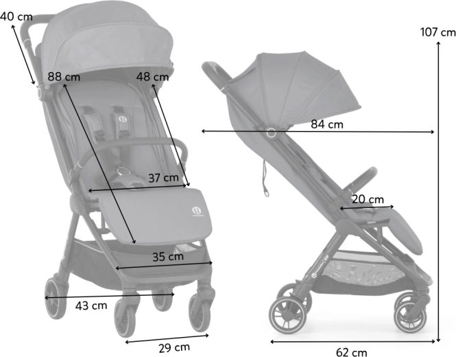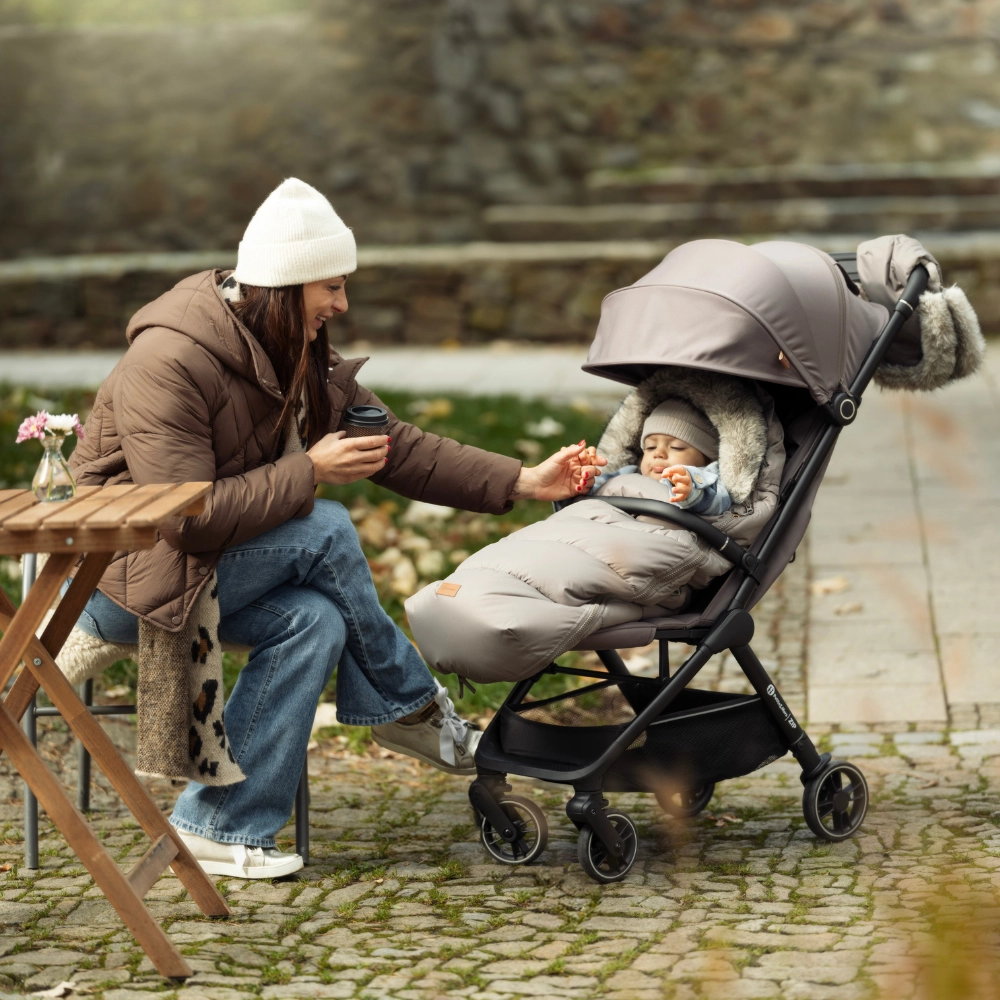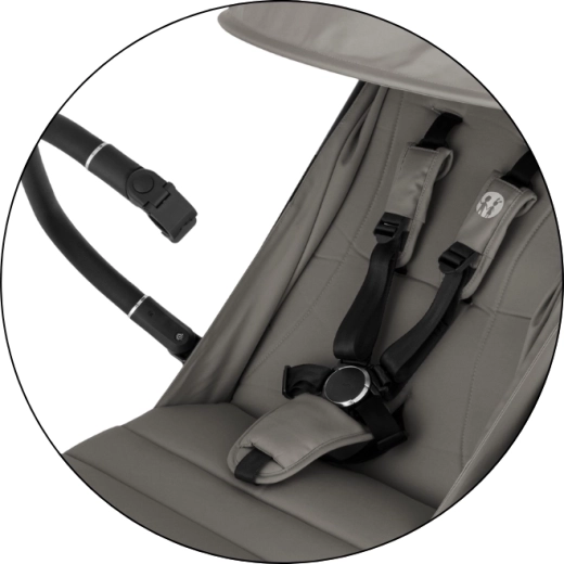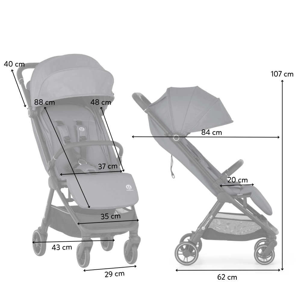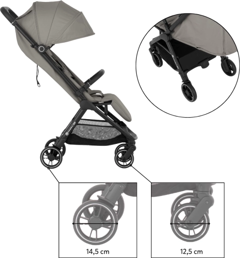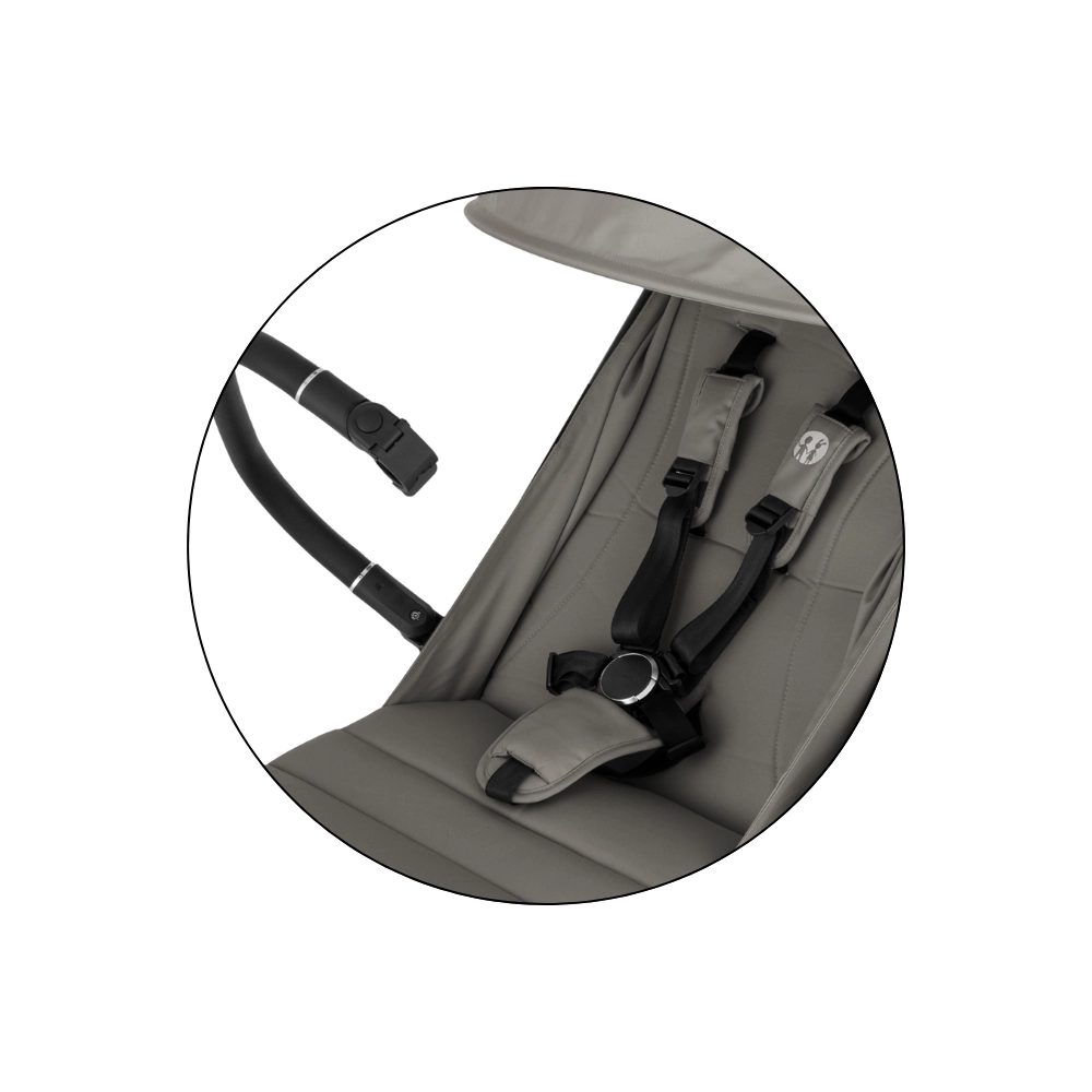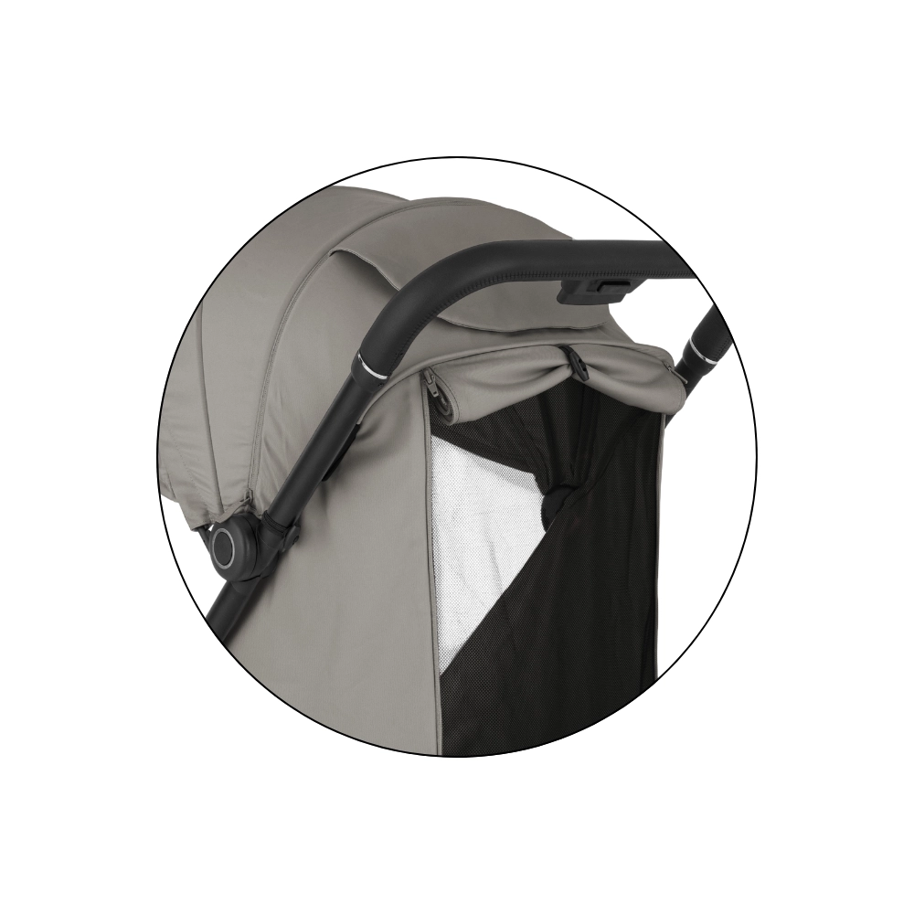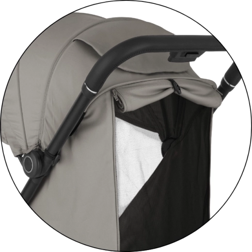 Met één vloeiende beweging klap je de buggy in tot compacte afmetingen die zelfs geschikt zijn voor in het vliegtuig. Ideaal wanneer je je kind vasthoudt of boodschappen draagt.