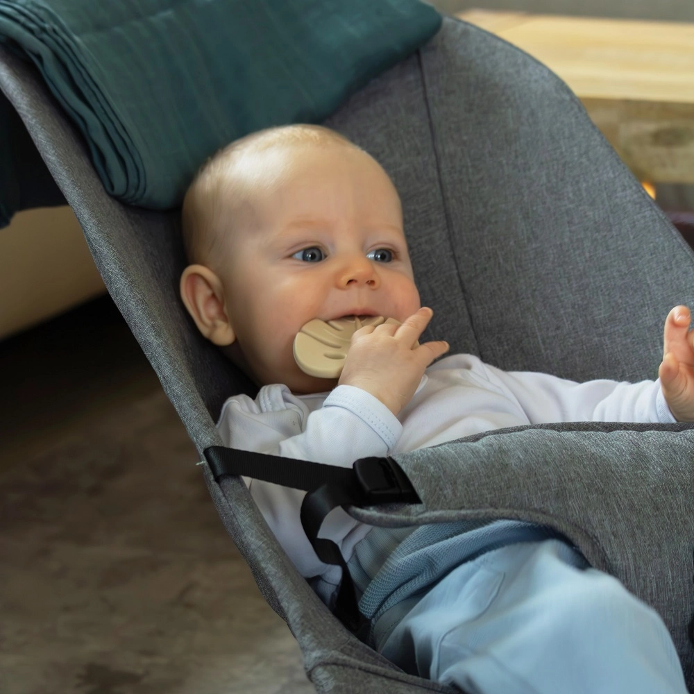 De siliconen bijtring in bladvorm is ontworpen voor een zachte massage van het tandvlees en om je baby te kalmeren tijdens het doorkomen van tandjes. Het zachte en flexibele materiaal zorgt voor milde stimulatie, terwijl de afgeronde vormen en compacte afmetingen veilig vastpakken en spelen ondersteunen.