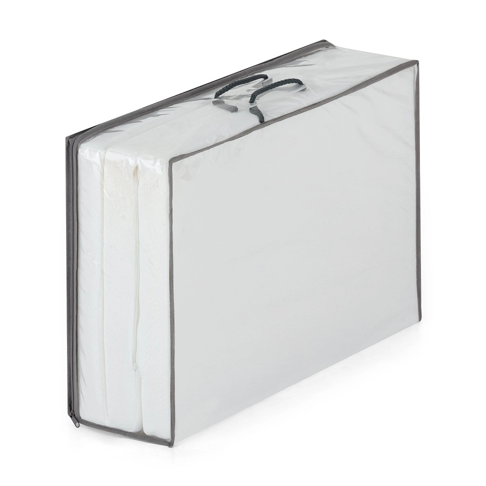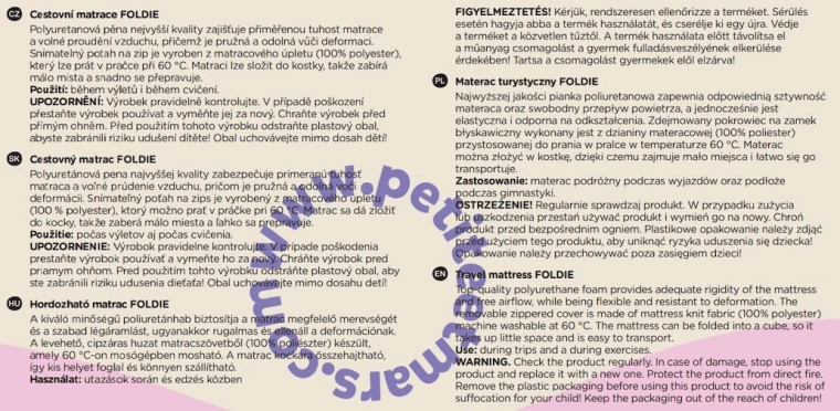 De praktische hoes met rits van duurzame matrasknit kun je eenvoudig verwijderen en wassen op 60 °C. Het matras vouwt snel op tot een kubus, waardoor het weinig plek inneemt in de auto of thuis. Bij de verpakking hoort een tas met handvat voor gemakkelijk dragen en opbergen. Geschikt voor reisbedjes en als oefenmat.