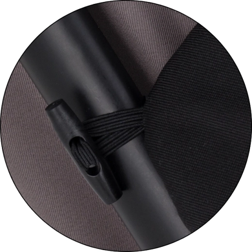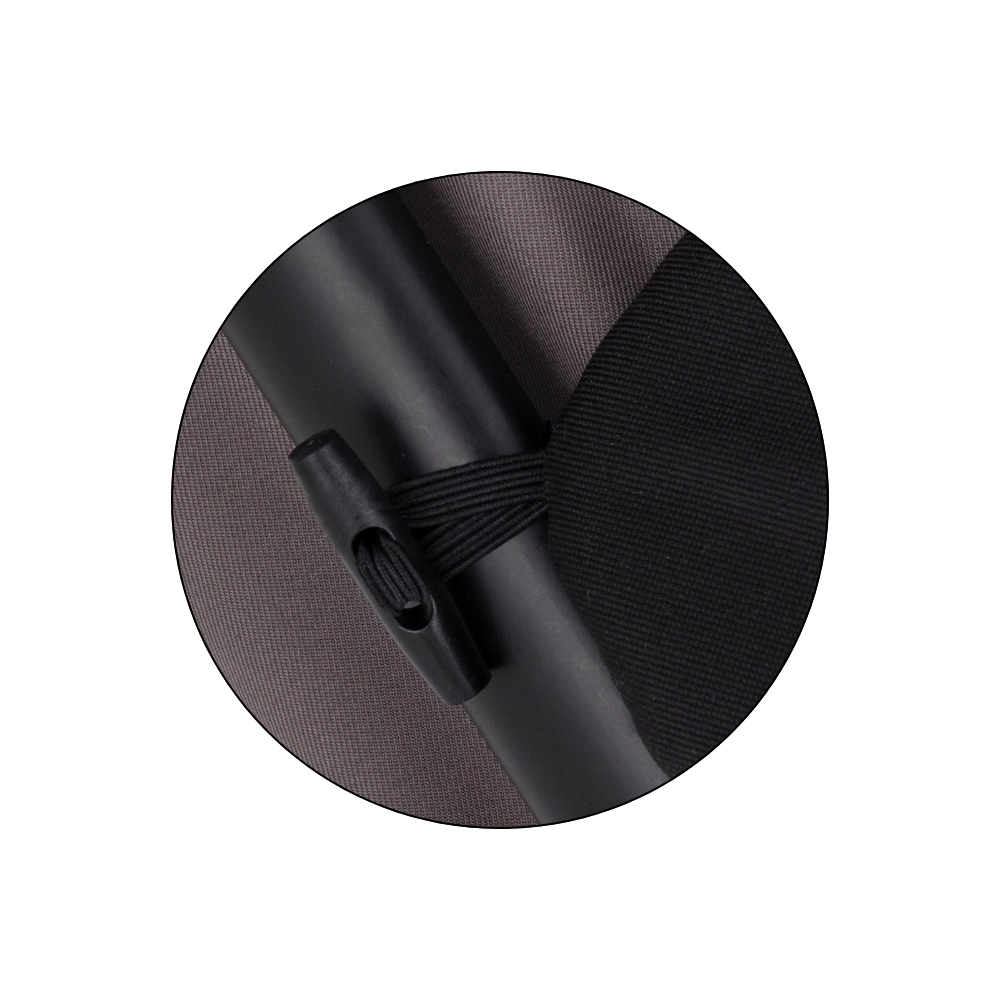 Elastische lusjes en een zekere sluiting zorgen voor een stabiele bevestiging aan het frame van de kinderwagen. Compatibel met veel merken.