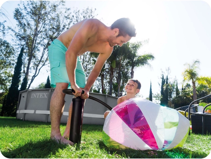 De handpomp INTEX Double Quick III is een betrouwbare hulp voor alle opblaasproducten – van luchtbedden en zwembaden tot strandballen. Het dubbelwerkende mechanisme levert lucht bij beide slagen, waardoor de oppomptijd aanzienlijk wordt verkort. Dankzij de duurzame constructie en stabiele basis is pompen comfortabel, zowel thuis als op de camping.