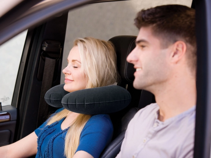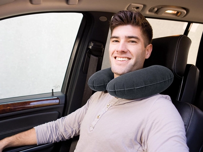 Geniet van comfort onderweg met het lichte en compacte INTEX-kussen. De zachte, geflockte (velours) afwerking voelt prettig aan en voorkomt wegglijden, terwijl de vorm voor milde ondersteuning van de nekwervelkolom zorgt tijdens het zitten in het vliegtuig, de auto of de trein.