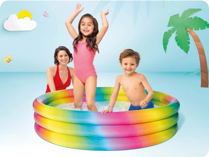 Het opblaasbare kinderzwembad Geometria van het merk INTEX combineert een kleurrijk design met betrouwbare kwaliteit voor dagelijks waterplezier. Stevige wanden met een dikte van 0,20 mm en een bodem van 0,18 mm zorgen voor betere weerstand tegen beschadigingen, terwijl drie afzonderlijke ringen stabiliteit en comfort tijdens het spelen bieden.