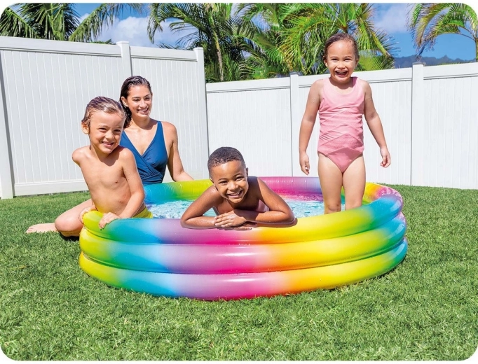 Verwen de kinderen met verfrissing in de zomer met het INTEX Geometria zwembad. Dit kleurrijke ronde zwembad met een diameter van 147 cm en een hoogte van 33 cm biedt voldoende ruimte voor veilig spelen, heeft drie opblaasbare ringen voor stabiliteit en is gemaakt van duurzaam PVC voor een langere levensduur. Dankzij de compacte afmetingen past het in elke tuin of op elk terras en maakt het kinderen vanaf 2 jaar blij.