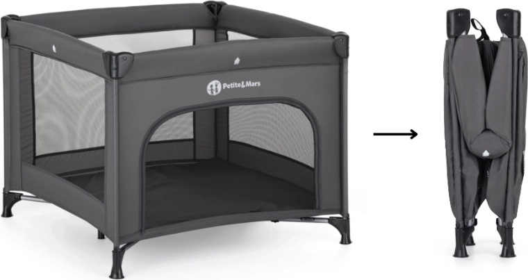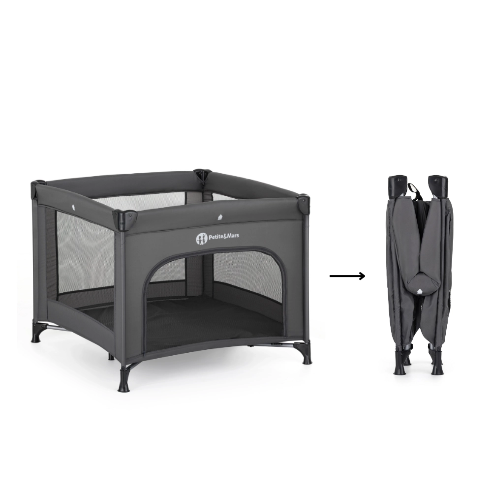 De praktische reisbox PETITE&MARS Nook Urban biedt je kind een veilige en stabiele ruimte om te spelen en uit te rusten. Dankzij de gaaszijwanden is er uitstekende luchtcirculatie en goed zicht op de omgeving, terwijl de te openen voorkant zelfstandig in- en uitstappen vergemakkelijkt. Het moderne donkergrijze design past in ieder interieur en in de verpakking ontbreken de opvouwbare ligvloer en draagtas niet.