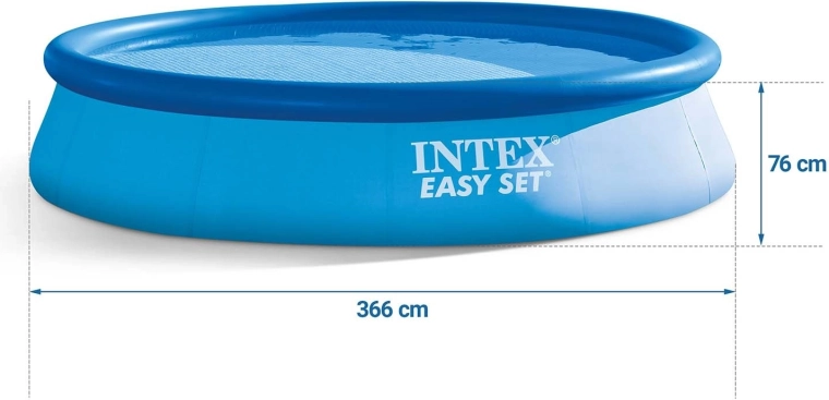 Geniet van de zomer in je eigen tuin met het comfortabele en duurzame INTEX-zwembad met een diameter van 366 cm en een hoogte van 76 cm. Dankzij de zelfdragende constructie is het snel opgezet in een paar momenten – je hoeft alleen de bovenste ring op te blazen en water in te laten. De drielaagse stevige PVC-materiaal met nylon gaasversterking zorgt voor een lange levensduur en weerstand tegen scheuren. Inclusief een filterpomp met filter type A voor moeiteloos schoon water.
