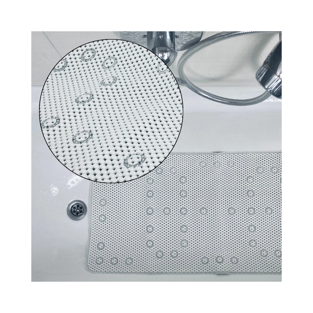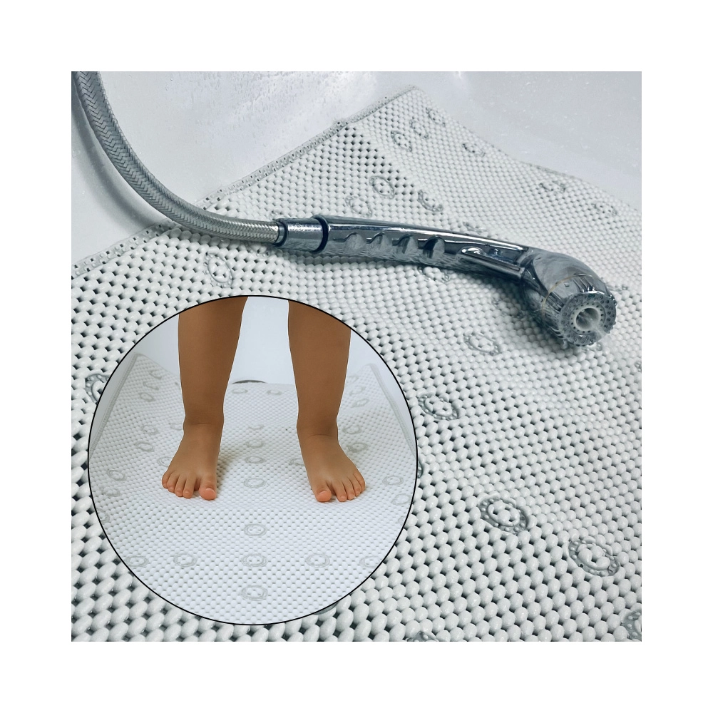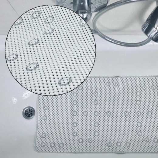 Dankzij het 100% PVC-materiaal is de mat zeer licht, duurzaam en sneldrogend. Installatie is eenvoudig: leg de mat op een vochtig oppervlak, druk alle zuignappen stevig aan en zorg dat hij perfect vlak ligt. Eenvoudig te onderhouden en met een universeel design is het een praktische aanvulling voor elk huishouden.