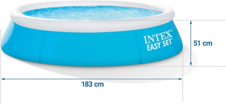 Geniet van de zomer in de tuin met het praktische zelfdragende Intex-zwembad met afmetingen 183 × 51 cm. De montage is snel en eenvoudig – rol het zeil uit, blaas de bovenste rand op en vul met water. De duurzame constructie van 3-laags PVC met versterkt nylongaas zorgt voor een lange levensduur en scheurweerstand. Ideaal voor verfrissing voor kinderen en het hele gezin.