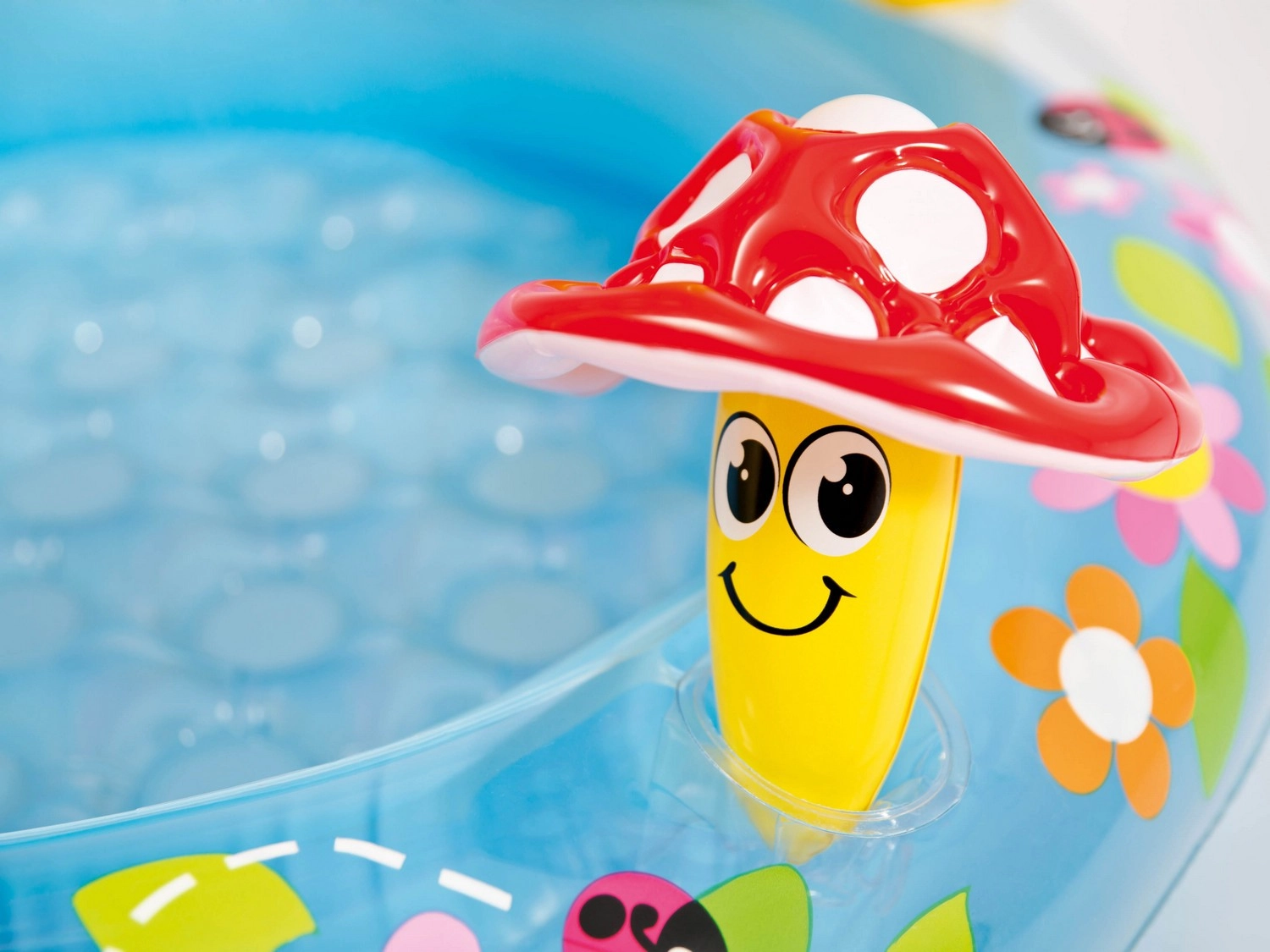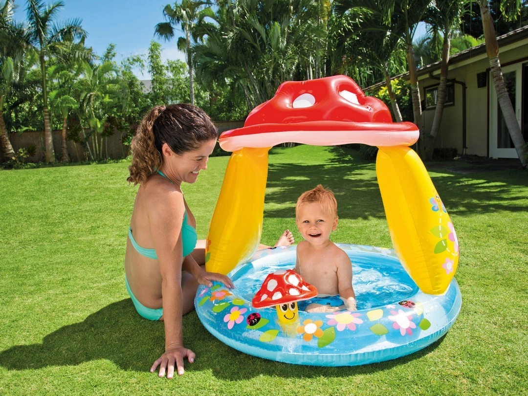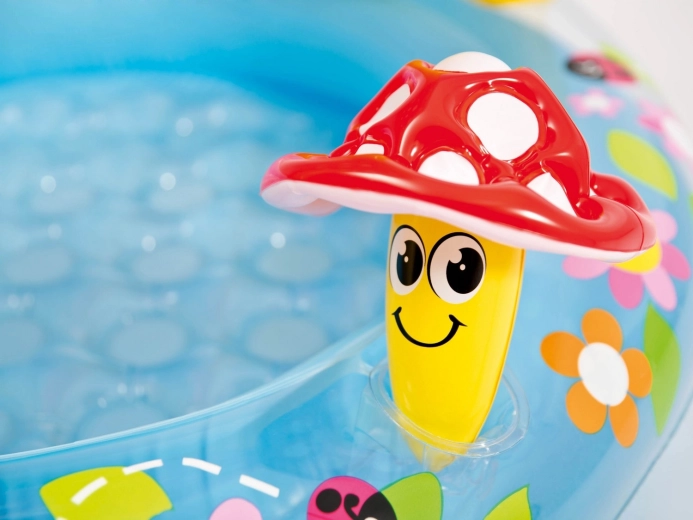Geef kinderen een veilige waterhoek in de tuin of op het terras. Het INTEX-zwembad met vrolijke bloemengrafics en de iconische paddenstoeluitleg biedt schaduw op warme dagen en een prettige omgeving voor de eerste waterpret. Dankzij de zachte, getextureerde bodem voelen peuters zich comfortabel en stabiel.