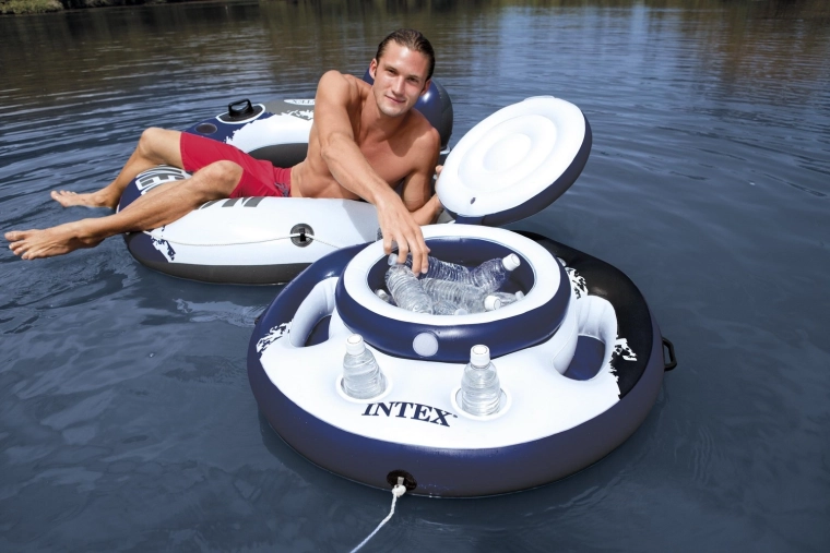 De drijvende koelbox van INTEX verandert je zwembad, meer of rivier in een relaxte oase. De ruime centrale box met deksel biedt plaats aan ijs en flessen, terwijl vijf geïntegreerde bekerhouders blikjes en bekers binnen handbereik houden. De stabiele constructie van versterkt PVC en drie afzonderlijke luchtkamers zorgen voor veilig drijven en een lange levensduur.