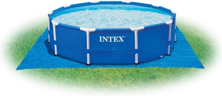Universele onderlegger voor een zwembad van 472 × 472 cm van het merk INTEX beschermt de bodem van het zwembad betrouwbaar tegen beschadigingen en vuil, helpt de ondergrond te egaliseren en biedt extra isolatie. Dankzij het duurzame vinylmateriaal verlengt hij de levensduur van het zwembad en verhoogt hij het zwemcomfort.