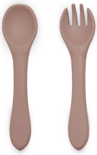 De praktische set kinderbestek PETITE&MARS Take&Match Velvet Latte voor kinderen vanaf 6 maanden bevat een lepel en vork van veilige voedselveilige siliconen. Dankzij de zachte punten, ergonomische korte handvatten en tandvleesvriendelijk materiaal maakt het de eerste stapjes naar zelfstandig eten makkelijker. Het bestek is BPA-vrij, licht, antislip en vaatwasmachinebestendig.