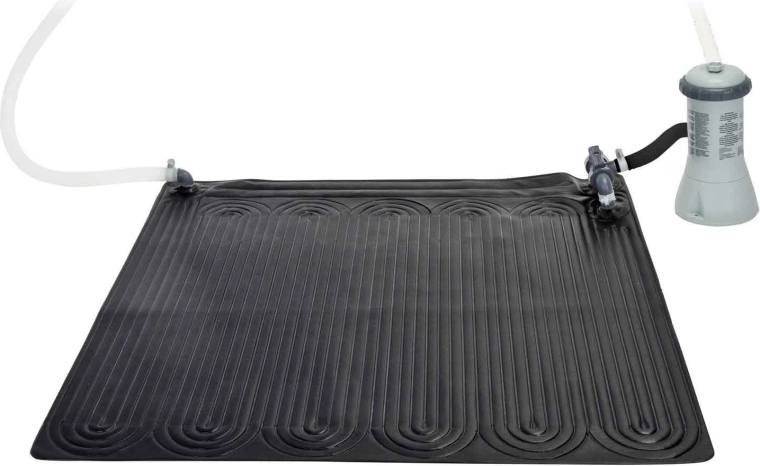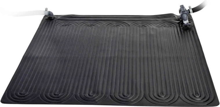 De INTEX zonneverwarmingsmat gebruikt zonne-energie om het water geleidelijk te verwarmen terwijl het door spiraalvormige kanalen in de mat stroomt. Dankzij de robuuste PVC-constructie is hij duurzaam en toch licht om te verplaatsen. Aansluiten op de filterpomp is zo gebeurd – de mat wordt geleverd met adapters en snelkoppelingen, zodat de installatie eenvoudig en gereedschapsloos is.